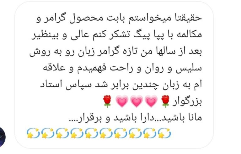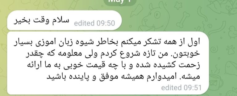 سپاس از لطف همه زبان آموزان عزیز. 🙏💚