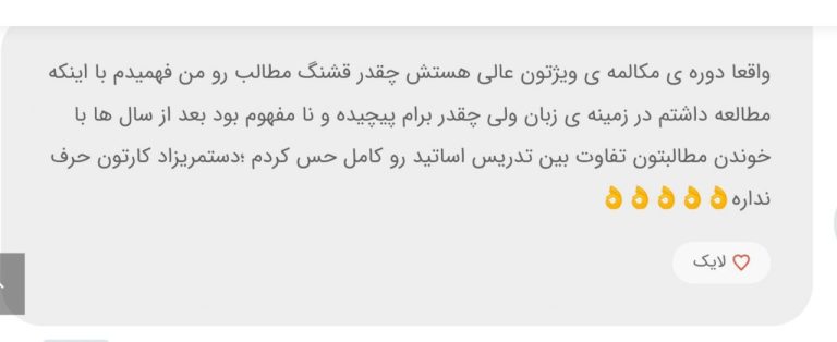 زبانآموزان زبان زیبا از شیوه آموزش متفاوت و کاربردی این مجموعه رضایت بالایی دارند. بیشتر آنها میگویند که برای اولینبار توانستهاند بدون حفظ کردن قواعد خشک، بهصورت طبیعی و روان انگلیسی صحبت کنند. تمرکز زبان زیبا بر مکالمه واقعی و تمرین روزانه باعث شده یادگیری برایشان جذاب، مؤثر و ماندگار باشد. بسیاری از زبانآموزان تأکید دارند که پس از مدت کوتاهی اعتمادبهنفس بیشتری در صحبت کردن پیدا کردهاند و از نتیجه کار بسیار خشنودند.